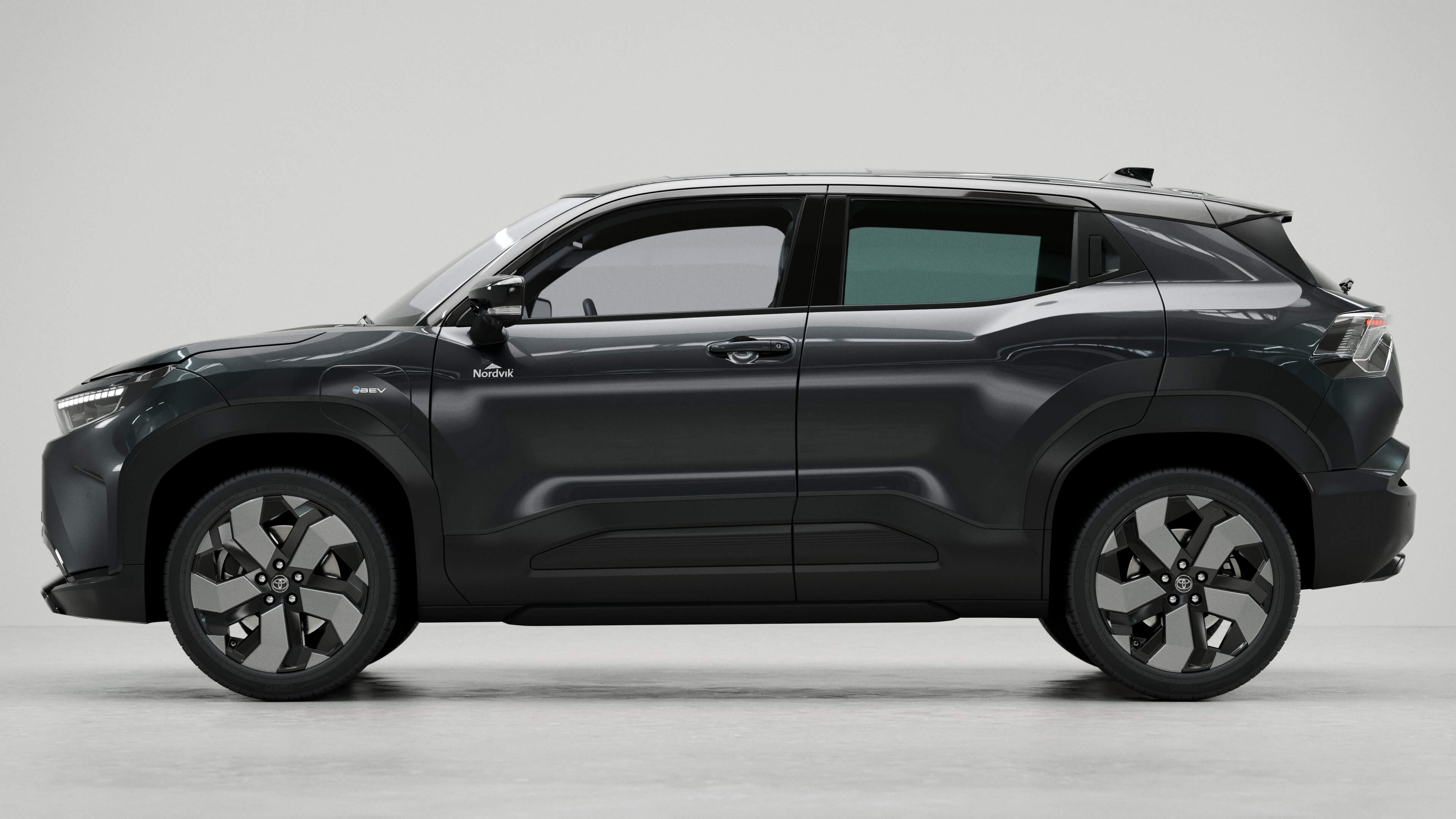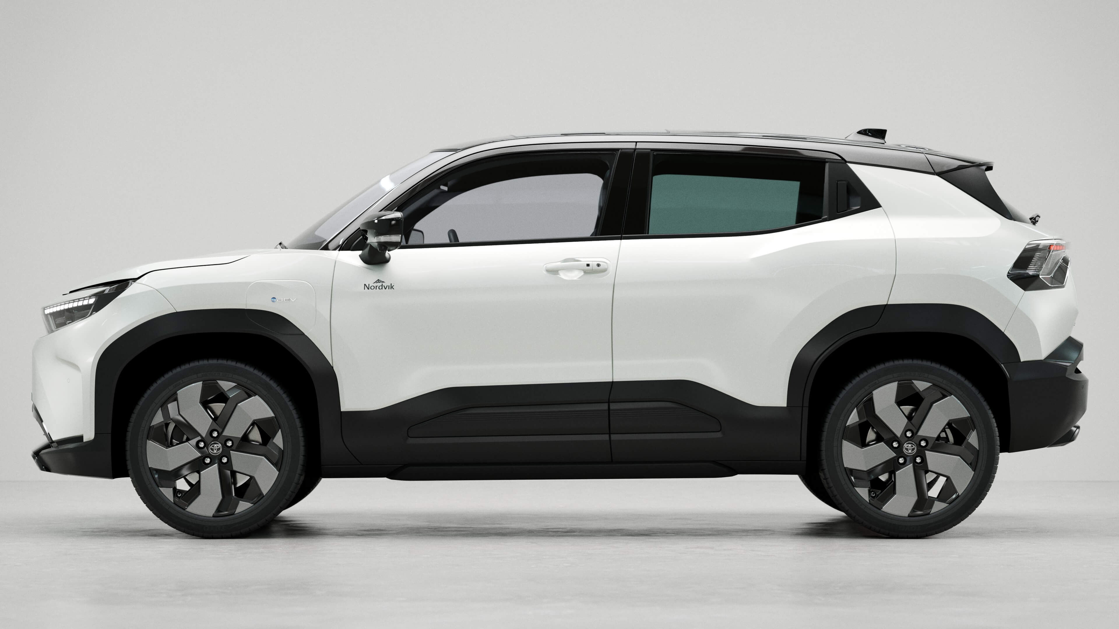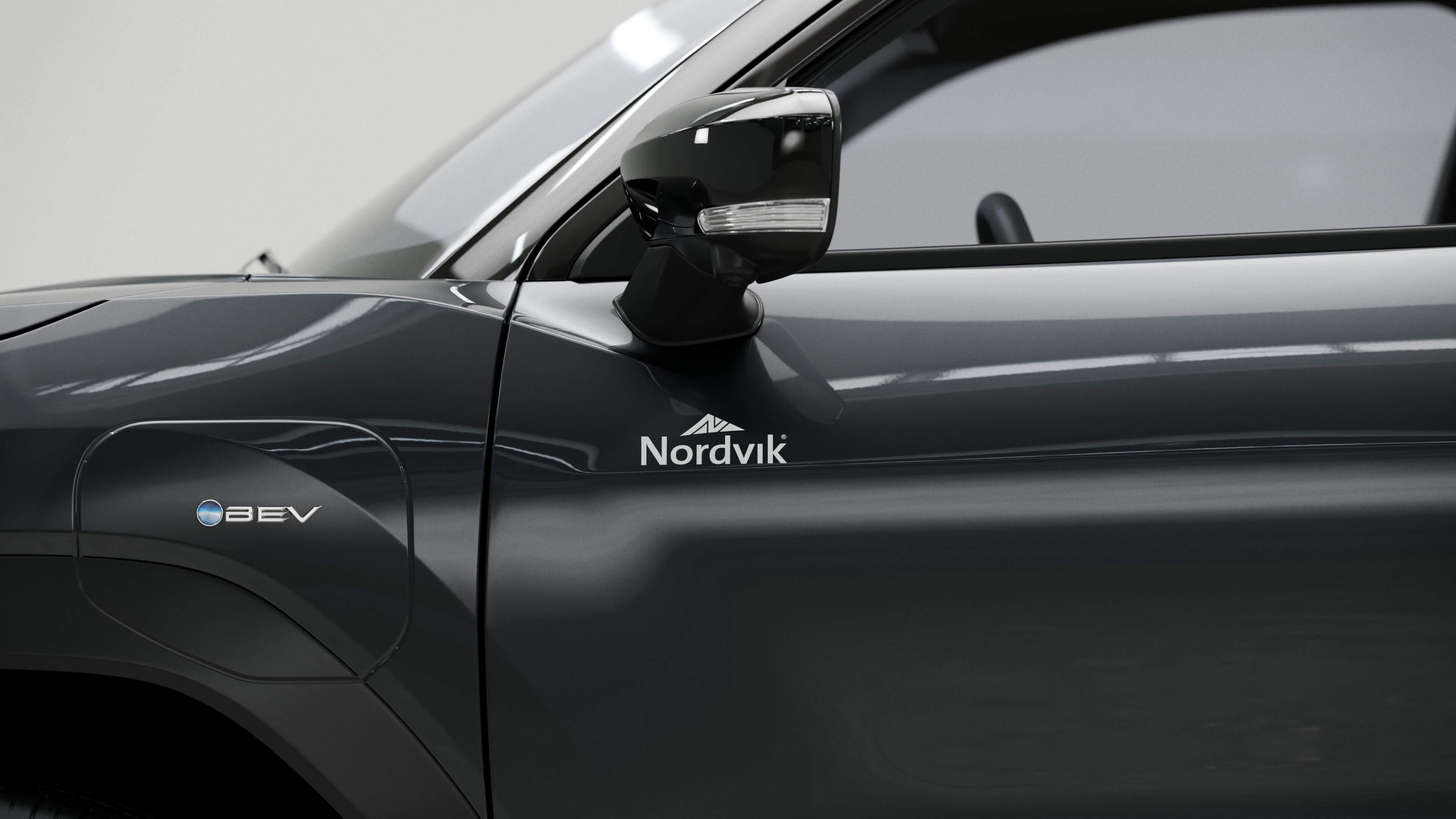 Nordvik logo (12 cm bred) plasseres under speilet. Lys logo på mørk lakk, mørk logo på lys lakk.